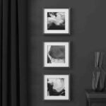 Chic black and white framed art set featuring a single flower and a captivating portrait with a balloon.