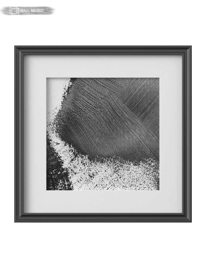 Modern black and white framed print featuring bold abstract brushstrokes and textures.