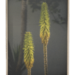 Serene framed print capturing the unique beauty of two vibrant aloe vera flower stalks.