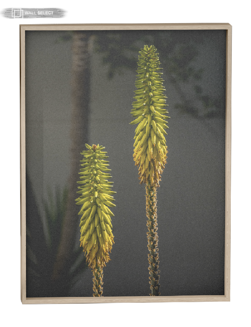 Add a touch of natural elegance to your space with this framed art print showcasing two striking aloe vera flower stalks. Their distinct form and subtle color gradient are beautifully captured against a soft, dark background, bringing a calm and sophisticated botanical element to any room. Perfect for modern, minimalist, or nature-inspired decor.