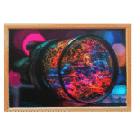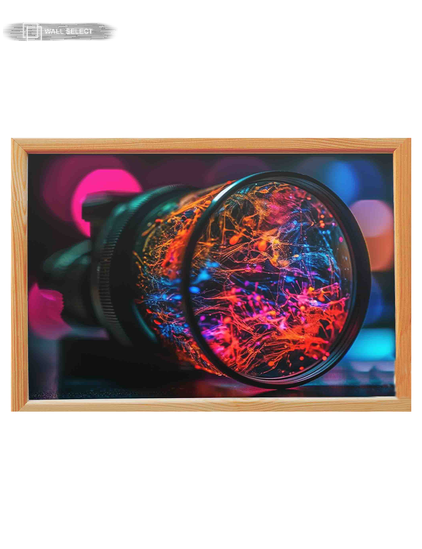 See the world through a lens of pure imagination with this stunning framed print. A universe of vibrant, abstract light bursts forth from a camera lens, symbolizing the spark of creativity. This modern and unique piece is perfect for a studio, office, or any creative space.
