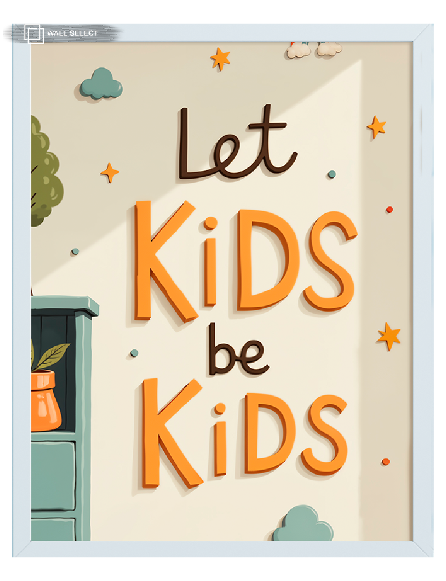 Playful “Let Kids be Kids” quote art in a clean white frame. A positive and fun message for any kid’s room or nursery.